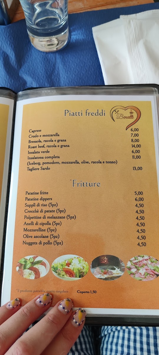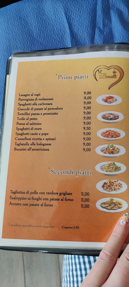 The menu available at Bar Pizzeria Benatti features a selection of pizzas, traditional Italian dishes, and bar offerings suitable for various occasions throughout the day. Patrons can expect options that cater to breakfast, light meals, and casual dining experiences.